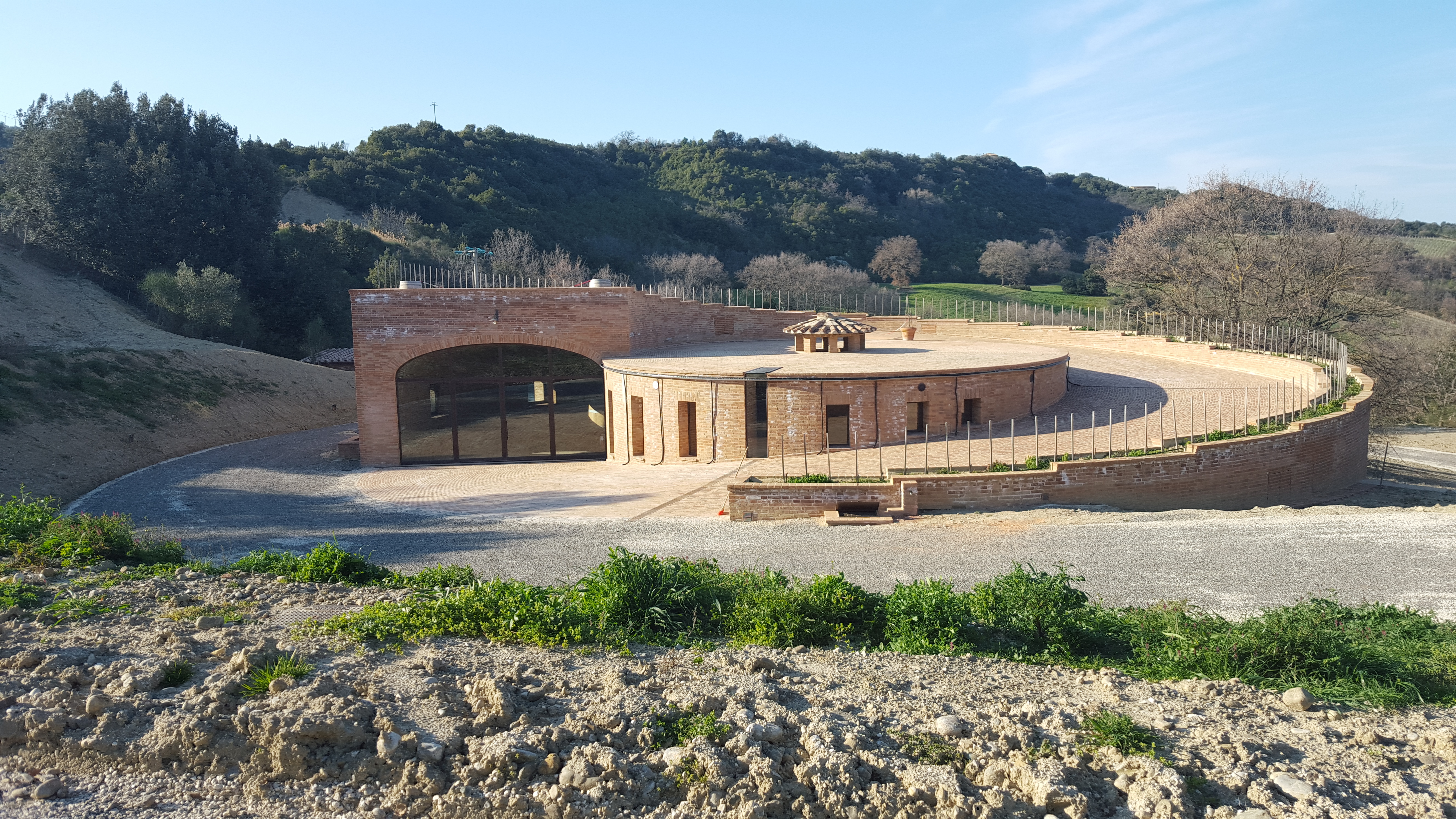 The round brick wine cellar at the Podere Le Ripi winery.